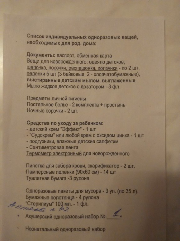 Так))))) Итого, 34 недели))))))) Все перестирала, перегладила, что надо в роддом, все сложила (осталось грамотно разложить по пакетам))) Вот, кстати список в наш роддом)