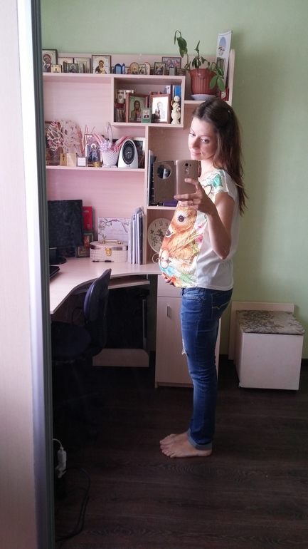 А еще мы были во вторник с малышулечкой на УЗИ. Сказали, что все хорошо, только по весу мы опережаем срок на 2 недели и выглядим на целые 35 недель. Вес 2100 уже! И как я понимаю, это генетическая предрасположенность со стороны мужа. И он, и его сестры-братья родились с весом 3900! Наша Анюта 3700. И вот вновь тенденция к крупному плоду. И узистка такая мне говорит:"вот вы сама такая дистрофичная!куда вам такую большую рожать?!" так вот и я о том же( причем, питаюсь я очень правильно! Мне хочется только мясо, овощей и фруктов, что я и кушаю. Не помню,когда последний раз что- то мучное ела( так что это не из-за питания.