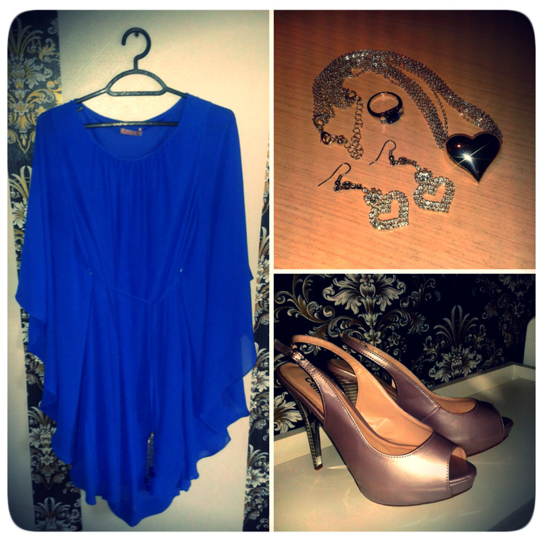 Бижутерия, конечно....эм... Короче, не берите ее совсем. Платье красивое, туфли ок, если с правильной сумочкой или поясом, но бижутерия точно нет.