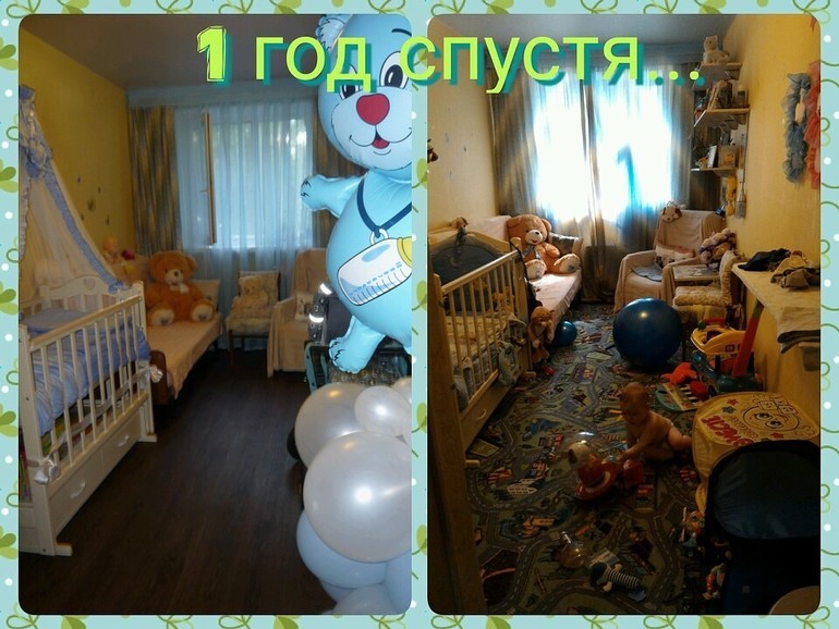 Ага!!! У нас ещё хуже — порванные и обрисованные обои, по всей квартире крошки еды — хлеб, макароны, сласти всякие. Ещё чего-нибудь ломаем, и помимо разбросанных игрушек ещё и части от разломанных. Плюс испачканные ковры и мягкая мебель. На новом доме решила купить обои дешевые, и то в спальнях, а так лучше стены красить, пока дети маленькие, иначе мало того, что деньги выбросишь, так и вид будет очень неприглядный. Дорогую мягкую мебель тоже покупать бессмысленно. Скорее всего после пары лет придется ее просто выбросить. У кого-то дети послушные, но это точно не про нас. К тому же с описыванием-обкаканием, срыгиванием и обслюнявливанием как минимум придётся в первый год жизни малыша столкнуться каждому родителю. Поэтому вкладываться в супер-ремонт и дорогую обстановку для малышика, думаю, не стоит. Всё должно быть практичным, крепким и надежным, экологичным и прочным