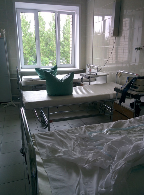 8:00 Затем я пытаюсь встать и дойти до туалета, но не тут то было. Сидеть то мне нельзя и я полу сидя пытаюсь слезть с кровати. Дверь открывается в палату и я слышу возглас акушерки: "кровотечение, врача срочно!" я в непонятках ложусь на кровать, сбегаются врачи во главе с главным, и говорят, что все нормально, это матка так сокращается. Ставят опять окситоцин для сокращения, и мочевыводящий катетер. Через пол часа приходит врач, который роды принимал, давит на живот, а из меня валится чего-то непонятное. Я в ужасе. Врач уходит, и через минуту прибегают аж три врача и две акушерки. Привозят каталку, меня на нее, и снова на четвертый этаж в родильное в тот же самый зал, где я рожала - как будто и не уходила.
