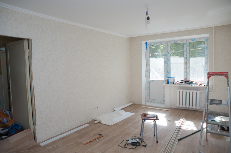. К своей 3-х летней с мужем годовщине мы практически закончили делать ремонт в гостиной, которую в будущем планируем совместить с нашей спальней, а малышульке нашему отдать маленькую комнатку (осталось прибить плинтуса, прикрепить розетки и повешать шторочку для уюта)