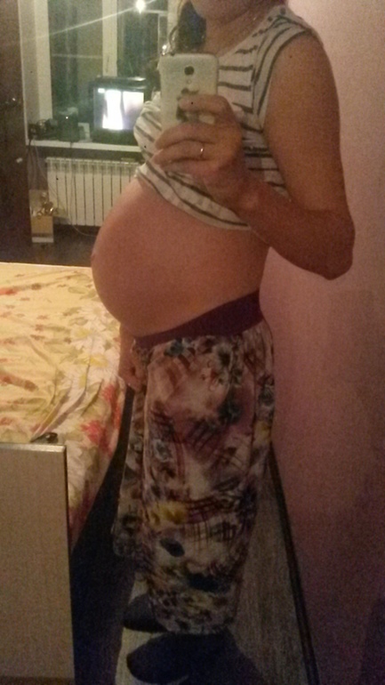 Хорошенечко так подрос животик по сравнению с прошлой неделькой! А вообще , мне казалось, что у меня маленький животик, но смотрю на Ваш, и по-моему мой сейчас, в 27 недель, как у Вас в 37 был) так что хорошенький и небольшой животик у Вас, и немного при опустился, но не полностью.