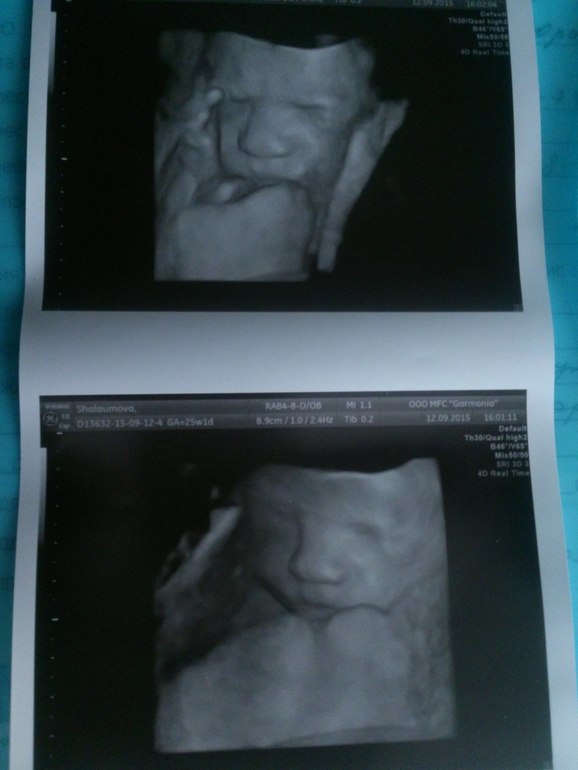 он такой мииииилый!!! шевелился дрыгался)) если врач голову лицо тыкал-он хмурился и рукой закрывался, бедняга) еще рот открывал чего то)) все развито как надо все соответствует, воды, плацента в норме. сердце 145 уд в мин. вес 760 гр![]()
