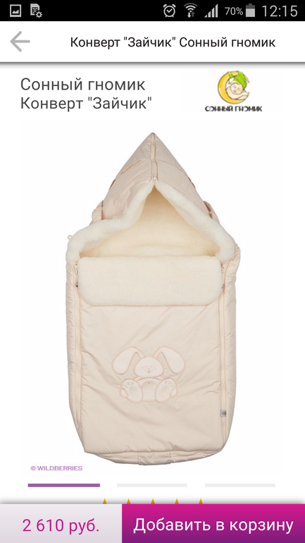 Мы ещё купили комбинезон-трансформер, но она в нём утонет, когда её выписывать будем) А меховой конверт буду класть в коляску.
