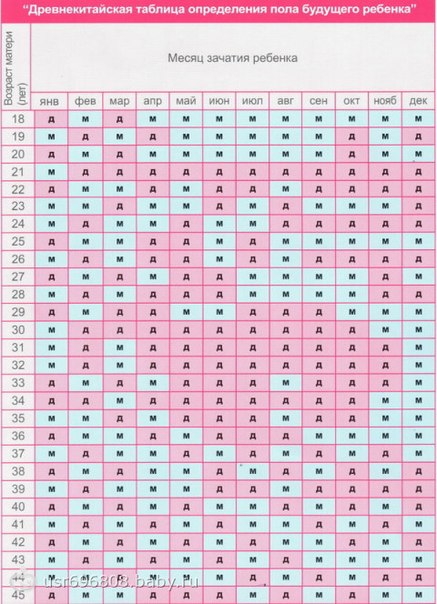 Мне рассчитывали не просто по таблице с двумя переменными. Брат коллеги как то считал, брал возраст мой и мужа, даты рождения и ещё кучу всего, не помню уже. И как то высчитывал математически. И насчитал мальчика) По узи мальчик) а по этой таблице не совпадает, согласно ей должна быть девочка.