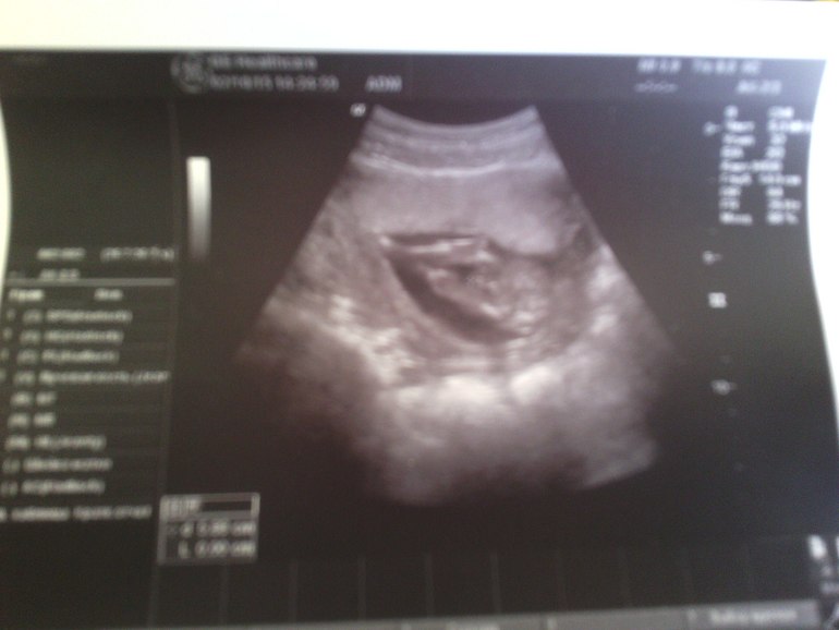 Вообще я ходила на УЗИ не столько за полом, сколько посмотреть плаценту, шейку, т.к. на первом скрининге ничего кроме малыша и не смотрели. А еще мне с 16 недель надо сокращать дюфастон, заодно глянули нет ли тонуса. С малышом все отлично, тонуса нет, плацентация по передней стенке. Не успела врач поднести датчик к животу, как сразу спросила знаем ли мы пол, т.к. видно было сразу и сомнений у нее не было никаких ))) итак...та-дам...у нас будет сын! Муж сразу довольно усмехнулся, т.к. вообще ни на минуту не сомневался, что будет наследник ))) а я просто знала, что у меня будет мальчик )))) Хотя, если честно, особой разницы нет кого рожать первым, т.к. я хочу разнополых деток ))) Зато теперь можно присматривать какие-то вещи, зная на какую расцветку опираться ))) Малыш все УЗИ крутился и вертелся, так что фотографией в профиль мы не обзавелись. Зато есть в анфас нашего пузанчика