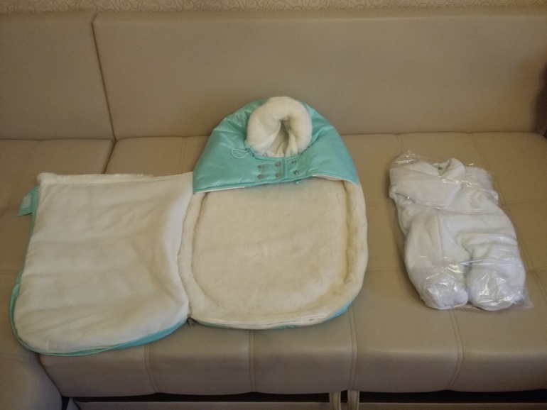 Я думаю до -10 дите не замерзнет, а ниже мы не будем гулять,на балкон можно выносить! Конверт на овечей шерсти теплый, белый комбез на синтепоне если что под него можно махровый или флисовый, три слоя получается, но будет тепло!!!