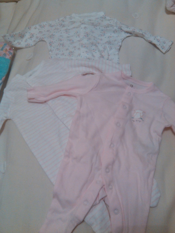 Гардероб наш пополняется, немного переживают, что там у нас бодиков с коротким рукавом много, ну штук восемь, на новорожденного, а они, оказывается очень быстро вырастают. Но, ничего, будем решать вопросы по мере поступления. Надеюсь, малышка будет не больше размером).