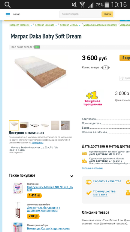 Напиши потом, вдруг ты раньше сьездиешь) я его увидела в самом начале поиска, ещё кроватку не заказали, думаю надо иметь ввиду, потом перелапатила все сайты и так в магазинах смотрела, но по цене дешевле не нашла, а что находила по высоте тонкие и не двусторонние