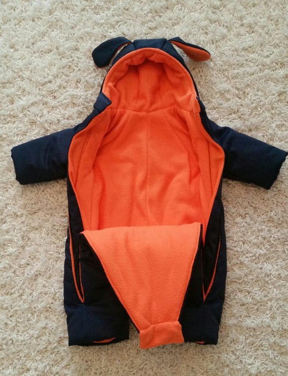 Очень здорово!!!!! Скажу сразу-сапожки не нужны. Или если хотите сшить-тогда пришейте их к самому комбинезону, а с отстегивавшимися очень неудобно. Лучше зашить штанину вообще. У меня покупной чикко с отстеливающимися на кнопочках пинетками-я их пришивала к комбинезону.