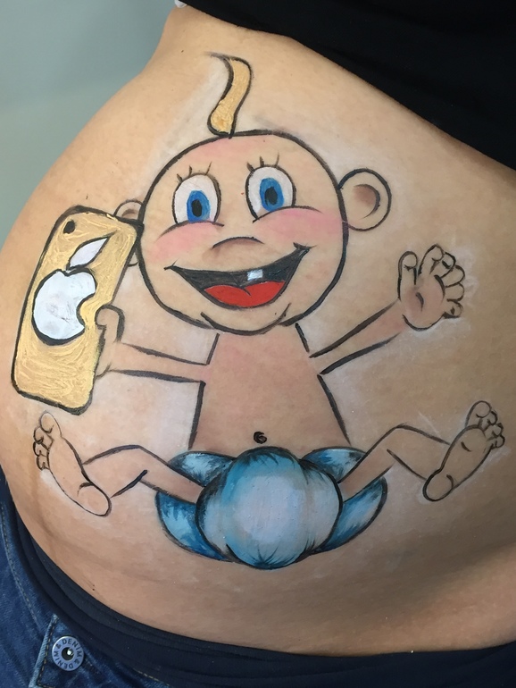 Сегодня у нас была фотосессия, которая, слава богу, прошла гладко. Уж как лень было к ней готовиться и все детали продумывать, я не фотофанат, мягко говоря. Фотограф поработала на совесть, вместо положенных 1,5 часов муштровала нас и ставила во всякие разные позы аж 2,5 часа. Перед сетом на пузе был нарисован чудный однозубый ребятенок (см. ниже)