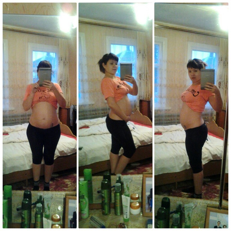 19-я, почти 20-ть: + 1,8 кг от добеременного веса. Пузико... вроде есть :) а к вечеру раздувается просто гигантское :), аж пупок очень тянет :(