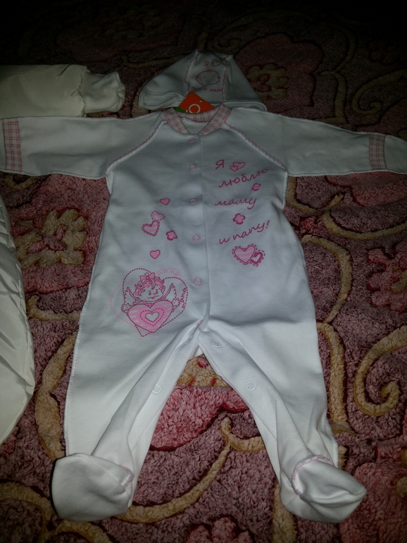 Наряд на выпискуНаконец-то я купила вещи для выписки. Времени еще много конечно, но хотелось именно в декабре все купить. Бродили до этого бродили, ноги стоптали, а сегодня в одном магазинчике очень прилично отоварилась, только не знаю хорошо ли это и по вещам и поденьгам))) кому интересно, хвасты под кат :-) за качество извиняюсь, фоткала на скорую руку днем еще) в общем демисизон конверт мешок, как и хотела белый, европейский белый мягкий) ну картинка не навязчивая и цена качество привлекли. Потом мешок для прогулки под этот конверт или отдельно. И вот такие наборчики. Розовенький он побольше, а белый на выписку...ну вот нашло, не знаю верно ли поддалась) там под слип еще распашонка на кнопочках и есть красивый трикотажный плед в комплекте. И то что не сфоткала дак это чисто шерстяные и немнрго колючие белые шерстяные носочки :-) а, и еще красивый чеп двуслойный молочный тоже под него надо думать что. Остается для выписки может шапочку чем чепчик+второй двухслойный и теплый комбинезончик без капюшона, типо шерстяного а внутри хб. Думаю вот не замерзнем ли в марте...