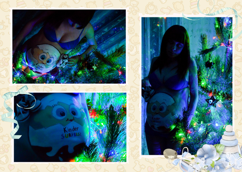 Ого!!! Вы перед зеркалом сама рисовали?? Муж помогал??? Очень классные фотографии! Особенно с ёлочкой! Вообще супер!!!!!