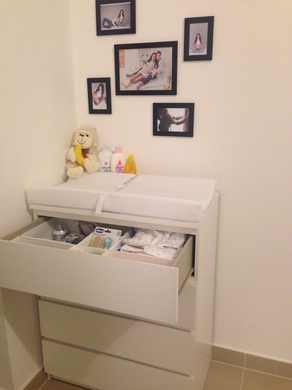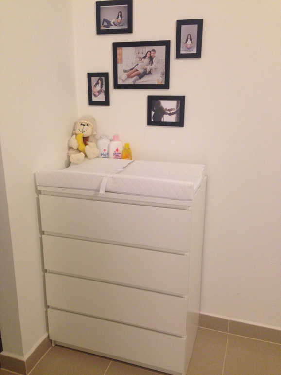 Места для пеленания вроде более чем достаточно) всякие баночки скляночки поместились на комоде за матрасиком, влажные салфетки/полотенца и одежда в самом комоде на первой полке. В общем все под рукой (: