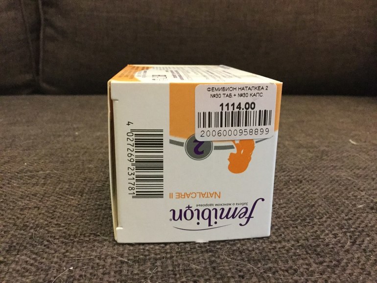 Я с удовольствием всю беременность и период планирования принимала сначала Фемибион 1, потом Фемибион 2. Считаю, что витамины отличные! Но у меня тут обнаружилась мочекаменная болезнь, и врач в почеченом роддоме запретила мне принимать любые витамины для беременных из-за большого содержания кальция. Всё бы ничего, но как раз накануне я купила в аптеке новую упаковку Фемибиона 2, а сейчас допиваю предыдущую, и новую уже не начну. Так она и лежит без дела.. В аптеках типа 36,6 она у нас стоит почти 1500, в noname аптеке я купила за 1114, отдаю за 700 рублей! Годен до июля 2017 года. Упаковка не начатая.