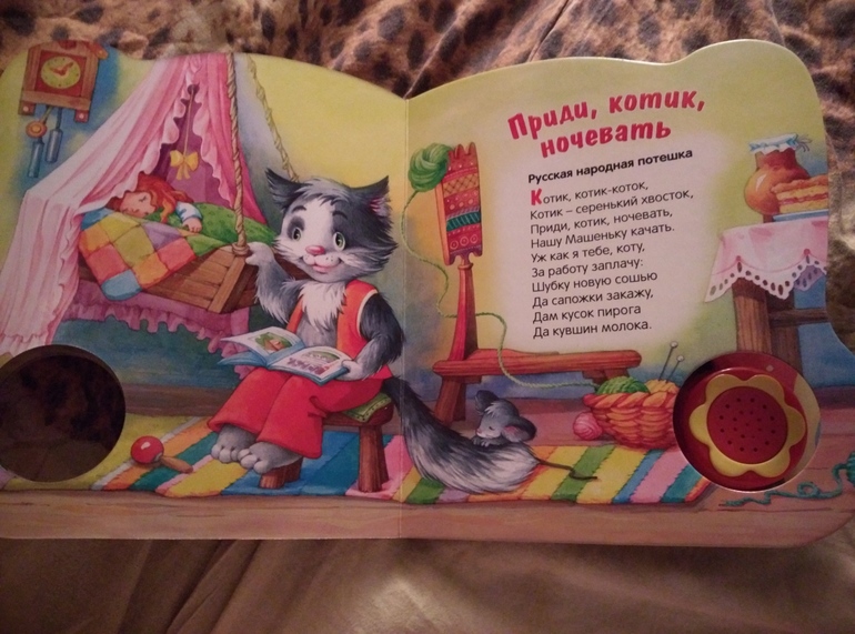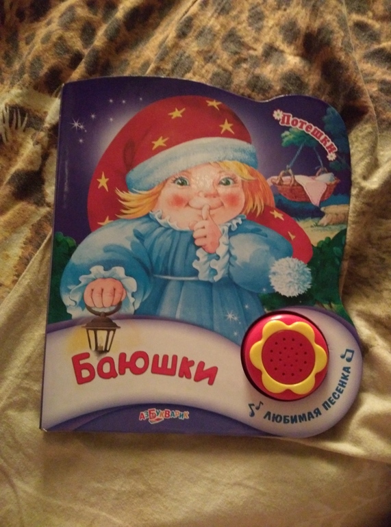 Сегодня в Ашане купили классную книжку с колыбельными. Их можно проиграть, а можно и самой петь. А может ему это поможет успоиться?