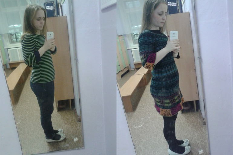 А это 5 и 13 недель. На работе еще не сообщала, но тк я не худенькая, живот становится все сложнее втягивать) Думаете уже итак все понятно (или все-таки могут списать просто на "потолстела"