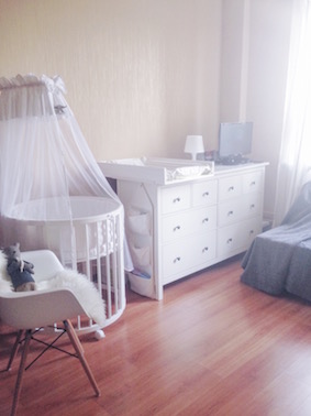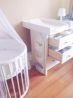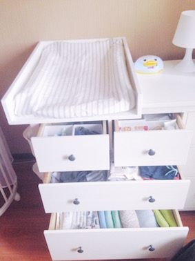 Комод отодвигается от стены (образуется место для хранения упаковок подгузников), доска устанавливается сверху и вообще не мешает доступу к ящикам, после того, как она перестает быть актуальной так же легко снимается оставляя нам нормальный "взрослый" комод. Кусачая цена + необходимость искать посредника для доставки и мы решили делать сами, благо, что это максимально просто. Сверху кладем самую простую пеленальную подстилку из икеи и вуаля.