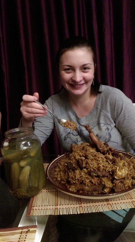 А я как всегда жруу!!! Хоть бы в какую нибудь не жрать)))) но здесь целый казан плова..муж наготовил...ммм ..а от огурцов еле оттащили..Оль..Я записалась на завтра на узи...еще 2 недели не доживу)))....а сама так что то боюсь...