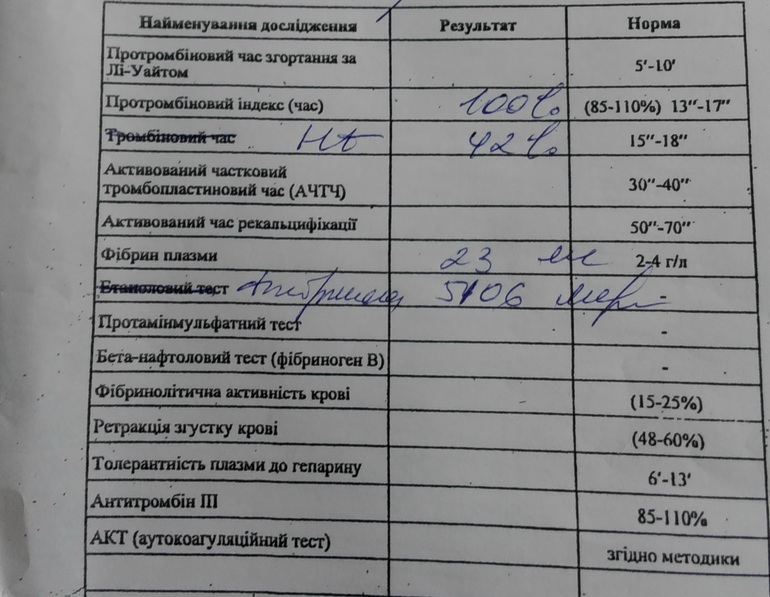 Получила анализ на свертываемость, а там все от руки, что-то зачеркнуто, потом дописано.