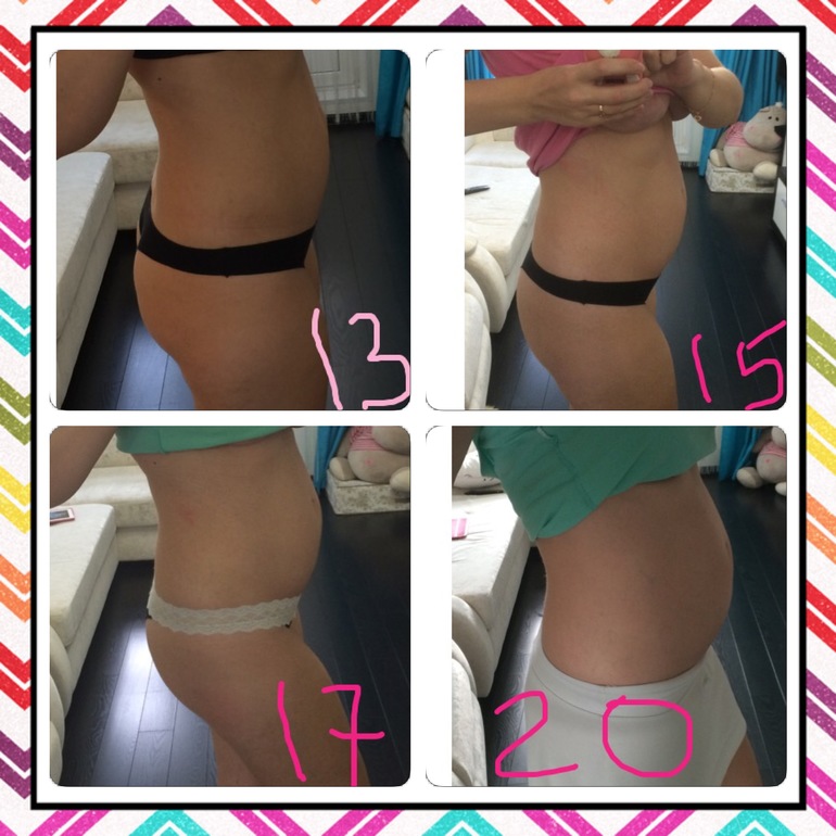 Малышка постоянно лежит поперек, наверное поэтому животик более круглый )) С Ваней форма была остренькая и только ближе к 35 округлился
