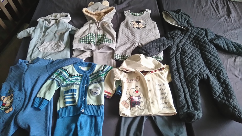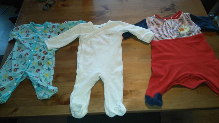 Мы покупали до родов одежду трех размеров: 56, 62 и 68. Так же было несколько вещей (2 слипика и 1 бодик) чуть меньшего размера - здесь он называется 50/56. И хотя сынок родился 4 кг, с его ростом 52 см даже самые маленькие вещи нам пригодились в первые недели. Но и с 56 размером в принципе справились бы. 56й размер мы носили до месяца - да, недолго. Но первые недели как раз самое сложное время, и стирать каждый день было бы куда напряжнее чем в следующий месяц. Поэтому 56й размер я считаю должен обязательно быть, и не в особо маленьких количествах. У нас было (помимо 50/56) 5 бодиков и 3 слипика, пара штанишек и одни ползунки и нам не особо хватало. Еще парочка слипиков была бы не лишней. 62й размер у нас было 8 бодиков и 8 слипиков. Слипиков слишком много, бодиков можно было бы еще парочку. По сути количество зависит от вашего понимания баланса между "хочу потратить как можно меньше" и "хочу стирать как можно меньше". При указанном ниже количестве вещей стирка будет где-то примерно раз в 3-4 дня.