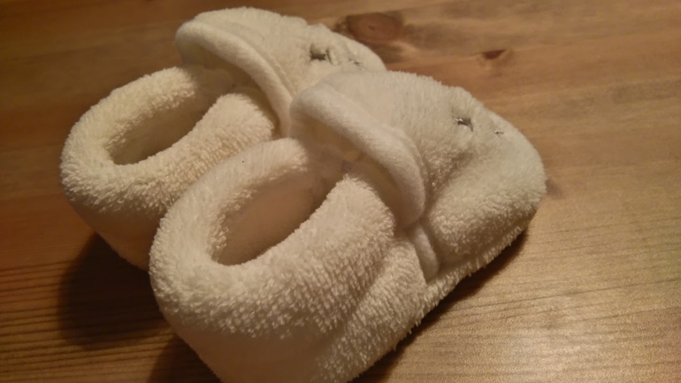 - тапочки-пинетки удобно закрепляющиеся на ножке (тоже для слинга). С размером не подскажу. Маленькие =)