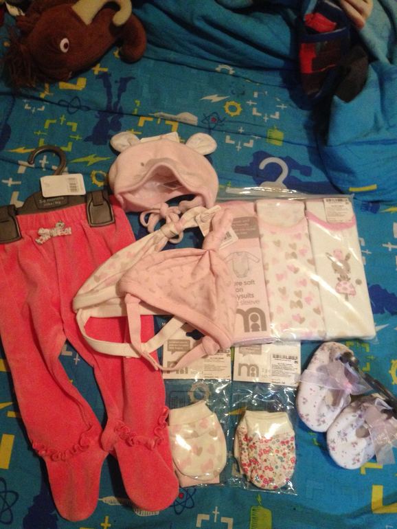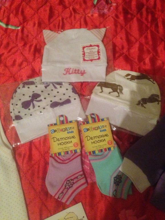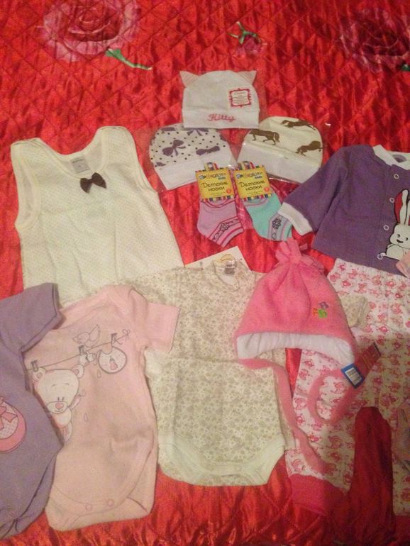 а тут просто в магазине с 50 процентной скидкой брали ползунки, боди, шапки, царапин, пенетки