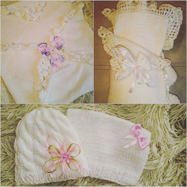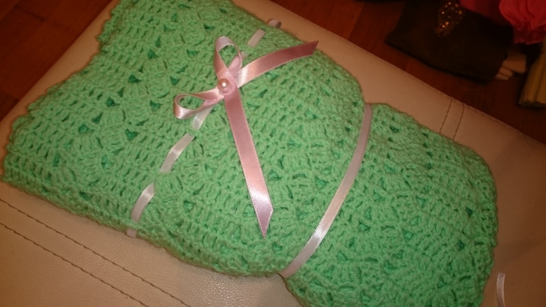 Пледик связала моя свекровь) в реальности он мятный и очень классный)так же белый Пледик она же нам связала и две шапочки)