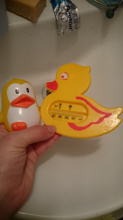 в ванну купили градусник, и игрушку резиновую пищалку и из рта льется водичка стоила 20 р в ашане по этому мимо не прошли