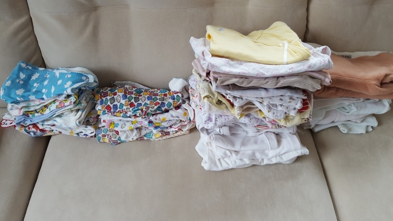 Вот большая часть из отобранного на первое время (примерно до полугода), остальное пока не стала доставать, а то складывать будет некуда.