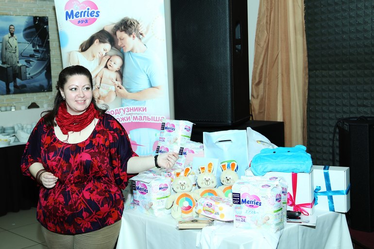Видимо, из-за того, что мамочек было слишком много, кому-то достались неполные подарочные пакетики, а кому-то и вовсе их не досталось. Думаю, что на следующей встрече организаторы вряд ли допустят подобное, но все-таки откладывать очередь за подарками на конец я бы не стала.