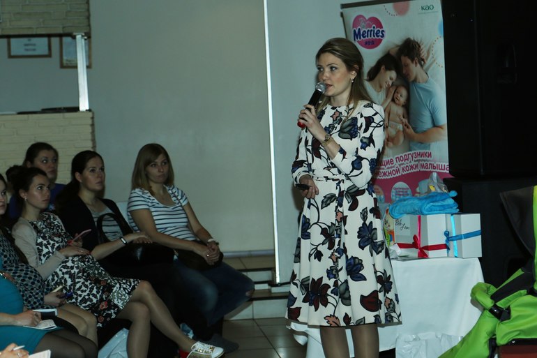 Первым лектором была Анна Новоселова, представляющая на встрече бренд Merries. Мне она знакома по лекциям-встречам в магазине Mamas & Papas в Европейском, где она регулярно рассказывает что-нибудь будущим мамам) Анна - перинатальный психолог, в целом очень приятная и милая в общении)) Разумеется, на встрече времени у нее было значительно меньше, чем на отдельных лекциях, но все равно было приятно ее видеть.