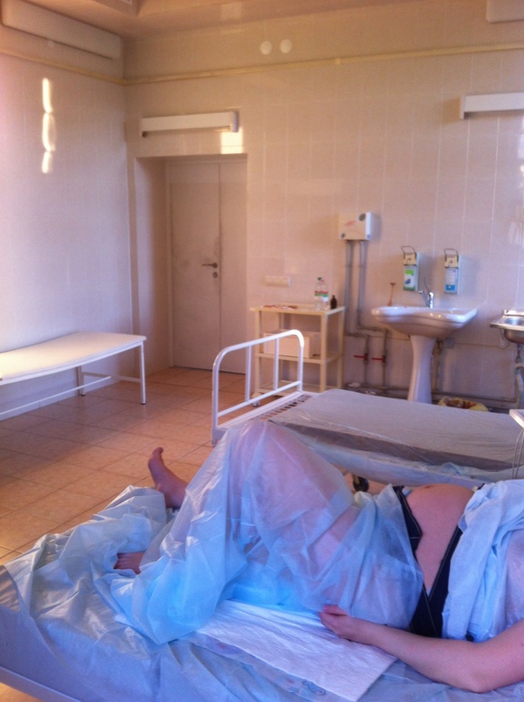 Это срочно нужно записать!пока я все нафиг не забыла!)) хотя наверно я это буду помнить всегда, в отличие от первых родов которые я мечтала забыть как страшный сон) итак, рассказываю!) ПДР был на 16 мая, но все было глухо как в танке, так и продолжалась еще 4 дня, пока часов в 19 вечера 20 мая мне не начало слегка тянуть живот. Да фигня,подумала я , и продолжала заниматься своими делами. Но к 23 часам стала ощущать конкретную схваткообразную боль, с четкими интервалами в 10-15 мин. Да не может быть, подумала я, и пошла ложиться спать)) муж на меня поглядывал как на дуру, мол че это я разодеваюсь и ложусь, если у меня натуральные схватки! Ему было сказано не мешать мне, я буду до утра спать)))) Очень сбивало с толку то, что малыш во время этих схваток яростно пинался и шевелился (так кстати и было до самого конца родов!он даже на потугах пинался!), поэтому я и думала что не рожаю. Но когда к часу ночи боль так и не ушла, а переодичность уменьшилась до раз в 5-6 мин, я начала прозревать! О Боже! Я рожаю!))) я пошла с грустной миной на лице собираться в РД. Пока туда-сюда, время уже было 2 часа, муж повез меня в РД, дочка спала, к ней пришла соседка(подружка моя). Приехали в РД в 2:30 ночи, пока меня оформляли я позвонила лучшей подруге, она была моим партнерам по родам) пока я сидела в раздумьях после клизмы, муж умчал домой к дочке, а подруга доехала до РД. Кстати все это время у меня были схватки, было неприятно, иногда больно) но я все еще не верила что я в родах, тк с первыми родами у меня такие "схватки" почти сутки длились, а уже потом начались адские боли настоящих схваток, еще на 13 часов! В этот раз я ожидала чего-то похожего, поэтому без особой радости пошла на осмотр. Нас с подругой отправили в отдельный бокс, и к нам пришла акушерка, время было 3:30 утра, после осмотра(было вообще не больно кстати) оказалось что открытие 4см, динамика хорошая!я была в шоке) в общем до 5 утра мы с подругой болтали, фоткались, я терпела схватки (язык не поворачивается их так назвать!),было конечно больно, но не больше. Я спокойно продыхивала каждую схватку, без стонов и криков, тихо мирно) успела полежать с ктг 20 мин, покушать шоколадку, встретили мы с подругой рассвет) фото всего процесса) это бокс где мы находились , на мяче я скакала пока шли схватки)