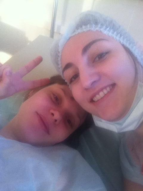 В общем в 5 утра пришла акушерка, снова осмотр и вуаля!! Открытие почти полное, скоро рожаем! Я обалдела, все это время я ждала дикой боли, адских схваток, морально готовилась к тому, что скоро начнется ад! А они мне говорят что я рожаю уже! В 6 утра пришли и прокололи мне пузырь, воды были чистые , открытие полное.Велели ждать потуги и рожать) это фото сделали мы в 6:30 утра, пока ждали потуги)
