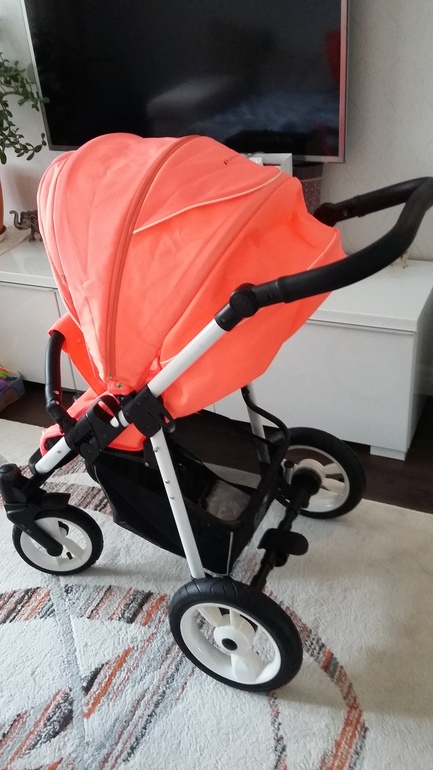 апд. Сходили на прогулку. На солнце коляска аж светится! А вот в пасмурную (застали на улице и такую) красиво. Но на фото все равно не передается.