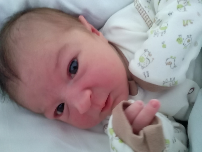 И вот на следующий схватке сново всё повторяется и акушерка режет меня ножницами боль просто капец,голова лезет и вализит,потом ещё одним тужением вылезла попка,и плюхнули мне моё солнышко с огромной головой на живот,и что я вижу махнатая спина и он весь чёрненький и волосы и кожа!!ну как?!я ж светлого заказывала,я растроилась,но была лишь мысль в голове,всё позади!!!!больше не будет нестерпимой боли.ещё час я лежада ждала пока найдётся врач свободный меня зашить.в это время муж за стенкой сидел с сыном,8/9 Апгар, 3830 вес и 53 см,,9.09. в 23.50 появился мой лапочка,я его уже так люблю)))он родился страшненький,а сча красавчик уже)))