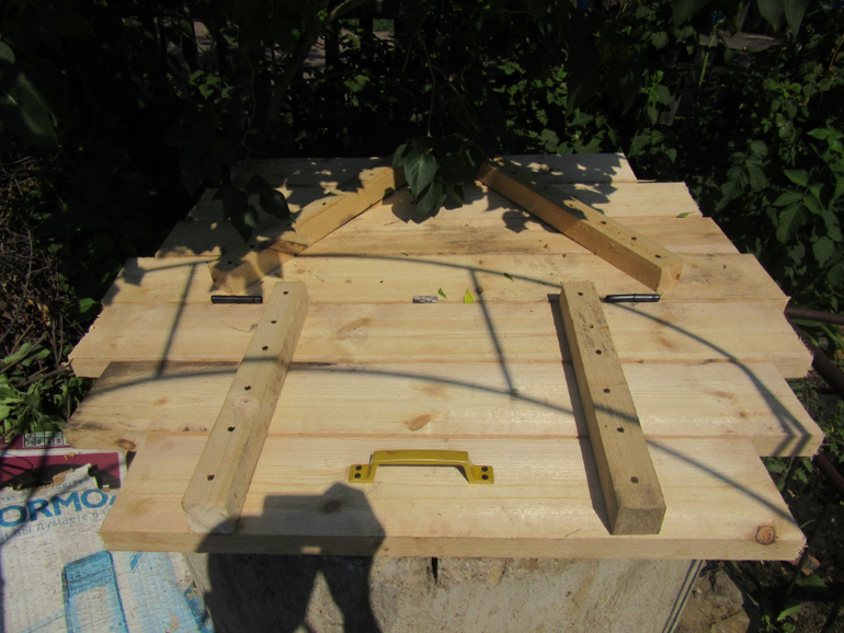 Крышку сменил на колодце,та уже сыпалась прям внутрь трухлявая(было- стало)