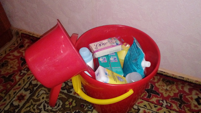 Есть еще такое ведерко над которым ржет муж ну а что вдруг я потом не выберусь а он не купит что мне нужно там детские гели,порошки,хоз.мыла и кондеры