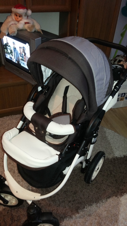 очень красивая! пожалуйста, скажите производителя и модель. я в сети не много колясок встречала у которых прогулка хорошо смотрится на шасси для люльки. А эта очень симпатичная