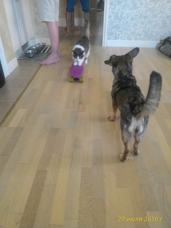 Старость не радость, кот в 12,5 лет проникся к скейту))))
