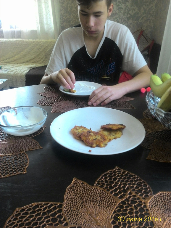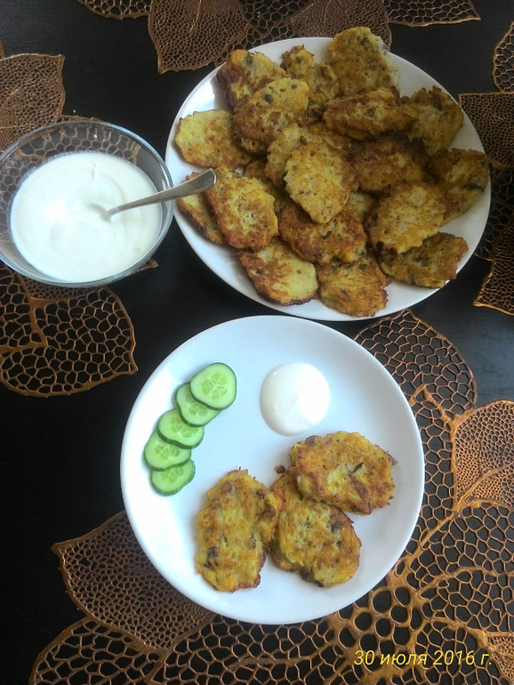 Завтрак) Я значит час, долбалась с драниками с белыми грибами....