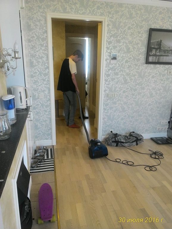 Так у нас каждое утро, тут еще кот в кадр не попал)))