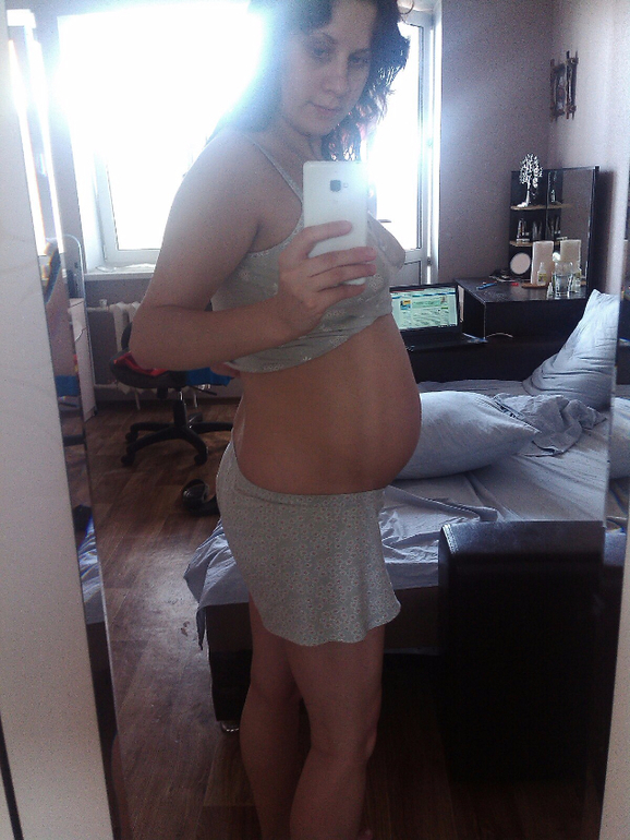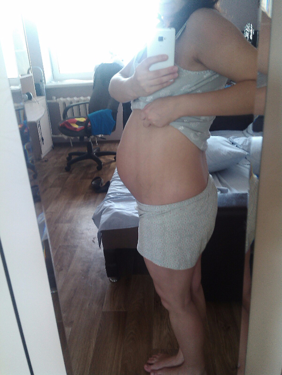 По животу, кажется не растет совсем... Уже с месяц появилась полоска на животе, правда, не очень яркая. Ребенка пинается, теперь уже чувствую ножку))) Иногда ручкой поскребет. Переворачивается все время, теперь чувство, что лежит по диагонали-ножки где-то слева сверху. Грудь все тяжелее становится, иногда из сосков выделяется немного прозрачной жидкости. Ореолы увеличились примерно на сантиметр в диаметре. Интересно, они обратно уменьшатся или нет?