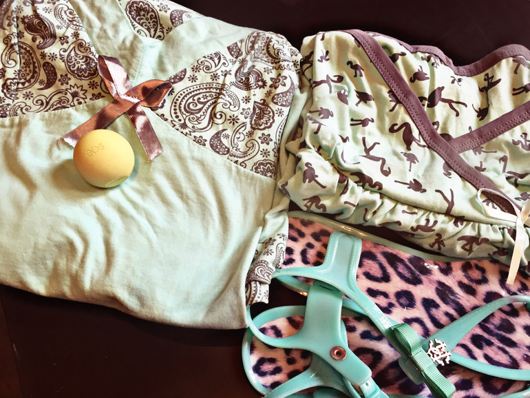 На фото рубашка справа пойдет в послеродовую сумку. Воду, документы и телефон доложу.