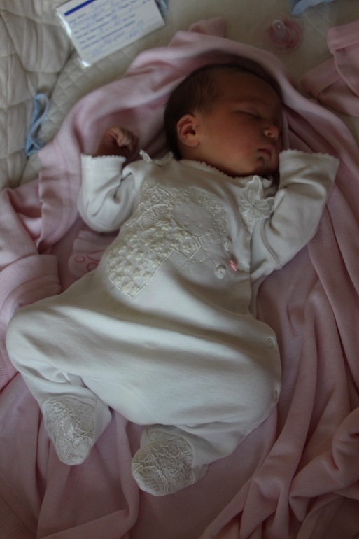 Проснулась в 4 утра опять от треников, как я тогда подумала, пошла попить водички. Легла обратно, не могу уснуть. Схватки стали более выраженные, то есть я уже различала начало и конец схваток. Пошла на кухню, чтобы мужа не будить и включила схваткосчиталку. Схватки шли с разной продолжительностью и интервал все время был разный. Думаю, ну ни фига себе треники, очень жестокие. Начала сидеть на ББ и искать инфу как отличить настоящие от треников. В это время меня успело почистить раза три, лучше чем любая клизма ))). Так я просидела до 6 утра. Пошла обратно в кровать, думала, вот сейчас усну и все пройдет. Ага, фиг там... Лежа было просто невыносимо терпеть схватки. От моих дышалок муж проснулся, офигел. Я говорю, рожаем по ходу, но я не уверена. А он посмотрел схватки три-четыре как меня крючит, и заставил позвонить доктору, а сам одевается и за машиной. Позвонил родителям, чтоб приехали с Ваней посидеть. А я сижу и не верю, говорю щас все пройдет, не надо паники... В 6.40 звоню врачу, объяснила ситуацию, говорит мчи в роддом. В 7.00 уже ехали, хорошо, что не все так рано едут на работу, пробок не было, но машин все равно было много. В итоге, примерно в 7.40 приехали в роддом, а там уже англаш. Охраник сказал, что мы уже четвертые за утро. Пришлось подождать пока оформят. Да и схватки как-то поутихли. Ну, думаю, сейчас домой поедем. Залезаю на кресло, а мне раскрытие 5 пальцев, оформляем. Я говорю, как 5? Не может быть... А мне говорят, доктор тебя ждет, так что не паникуй, сейчас поднимим в родблок, пузырик проколим и быстренько родишь. Я говорю, у меня там муж еще со мной, я без него не пойду. Вообщем, переодели нас и отправили с наилучшими пожеланиями )) Примерно в 8.30 поднялись, доктор уже на месте. Положили меня, подключили КТГ, поставили катетер, врач смотрит раскрытие, уже 6. Проколол пузырь, объяснил как пережить схватку. Я честно старалась расслабится и дышать правильно. Но получалось неочень. Муж рядом, ломаю ему пальцы на одной руке, другой он массирует мне поясницу. Буквально через 4-5 схваток начинает тужить, думаю что-то не то, как все быстро. Говорю акушерке что-то меня тужит уже. Позвала врача, открытие полное. Быстро трансформировали кровать в кресло. Начали учится тужится, вроде все получается, хвалят. Потом две схватки продышали и началось... Тужься, тужься, тужься, дыши, дыши, дыши... Потом плохо получалось, начали ругать, а я сама понимаю, что все в голову уходит, после потуги звездочки перед глазами. Кричу, ругаюсь, что больше не могу и пусть меня отпустят. Но тут муж сказал, чтоб взяла себя в руки, что я сильная и со всем справлюсь. И на очередной схватке я родила свою малышку целиком. В 9.20 утра 22 июля положили мне на живот нашу, такую тепленькую и крикливую Софийку, 3610гр и 53см. Боже, какое же потом было облегчение и непередоваемая эйфория. Потом ее забрали помыть и измерить. Муж все время был с ней рядом. А меня немного зашили, была небольшая трещина на рубце от старого эпизио.