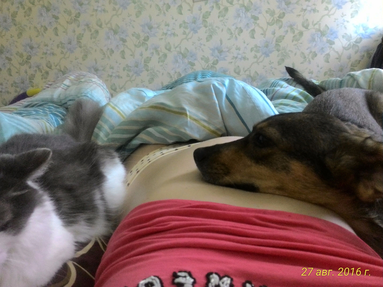 P.S. Всех Не любителей животных, прошу оставить свою нелюбовь при себе! животные чистые, привитые, чипированные, всегда вовремя обработаны от всех паразитов) с ними уже выросло не одно поколение детей))) Коту уже почти 13 лет, а собаке почти 10. И это наши "первые дети" не бросила, и бросать не собираюсь)
