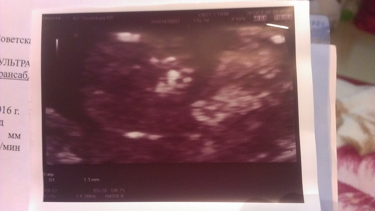 В пятницу мы прошли первый скрининг) в эту беременность как-то быстро бежит время, когда с Макушей ходила с нетерпением ждала каждую неделю, а тут смотрю на календарь - уже и первый триместр подходит к концу) Итак по УЗИ у нас все хорошо - 12,1 нед. поставили. КТР - 52,1 мм, БПР - 15,6 мм, ТВП - 1,3 мм, кость основания носа - 1,7 мм. И предположили мальчика) Хотя с Майюшей на этом же сроке и в этой же больнице тоже предположили мальчика, так что пока не окрашиваю кружочек) Хотя даже сфотографировали доказательство: